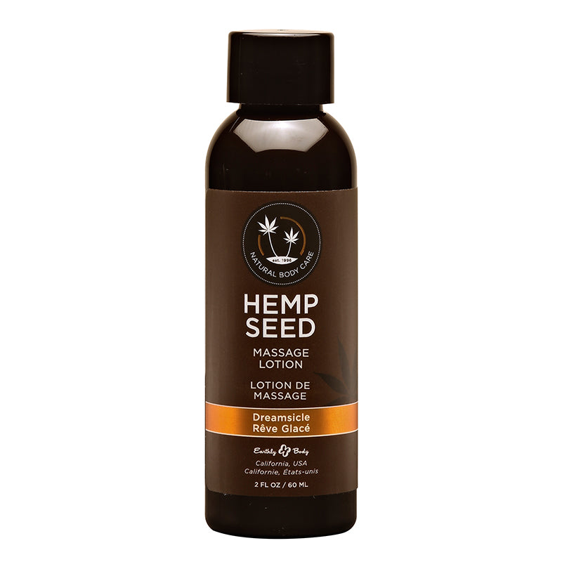 Be transported to paradise with the inviting scent and satin feel of our nutrient-rich massage lotion. Specially formulated with a blend of hemp seed and argan oils this deep moisturizing lotion provides an ideal glide for the perfect massage that leaves skin feeling smooth and nourished. Dreamsicle has the scent of tangerine and plumb. 2 oz.