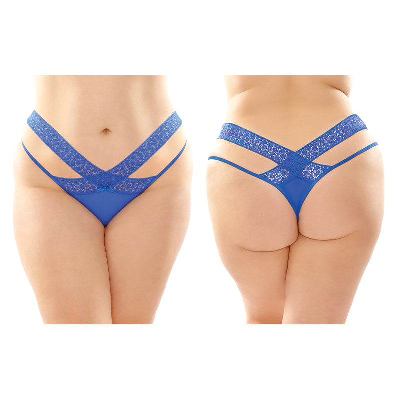 Fantasy Lingerie Daphne Microfiber Brazilian-Cut Panty With Criss-Cross Lace Waistband 6-Pack Royal Queen Size